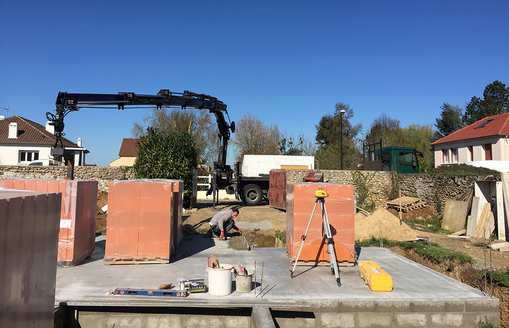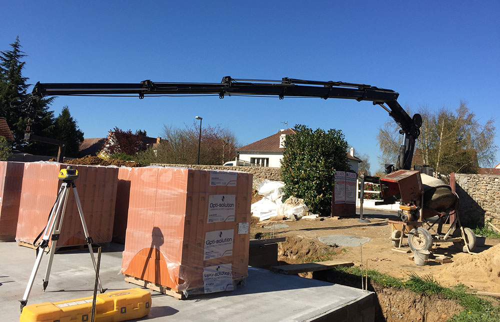 Livraison sur chantier avec extensions de grue sur 14 mètres